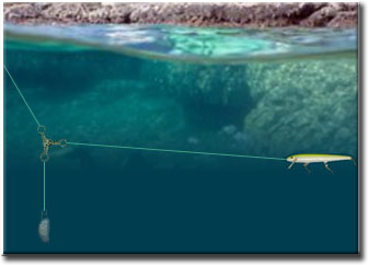 You need 6-pound test because thicker line has too much friction with the water and it will be hard to find the bottom. You also need a 1-oz or 2-oz weight, a 3-way swivel, light steel leader and a lure that does not sink. I like to use an original floating Rapala, J-11 Jointed Rapala, Junior Thunderstick or a Countdown Rapala.